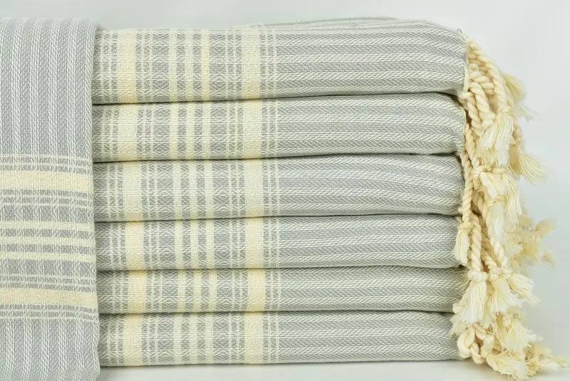 ビーチタオル トルコ綿 グレーストライプ、38x67インチ