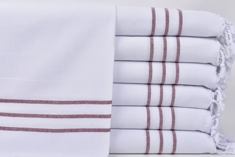 トルコ製ティータオル キッチン&ティータオル、バーガンディストライプ、24x40インチ