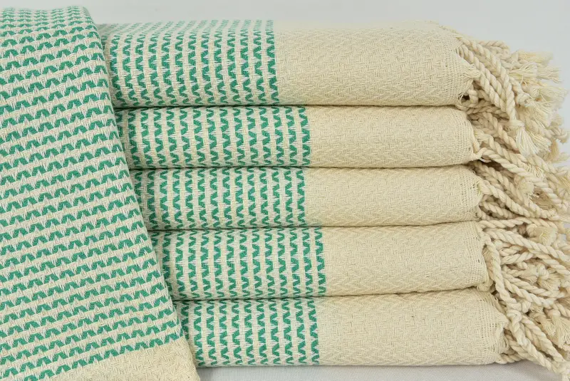トルコ製ハンドタオル、綿100%、グリーン、18x40