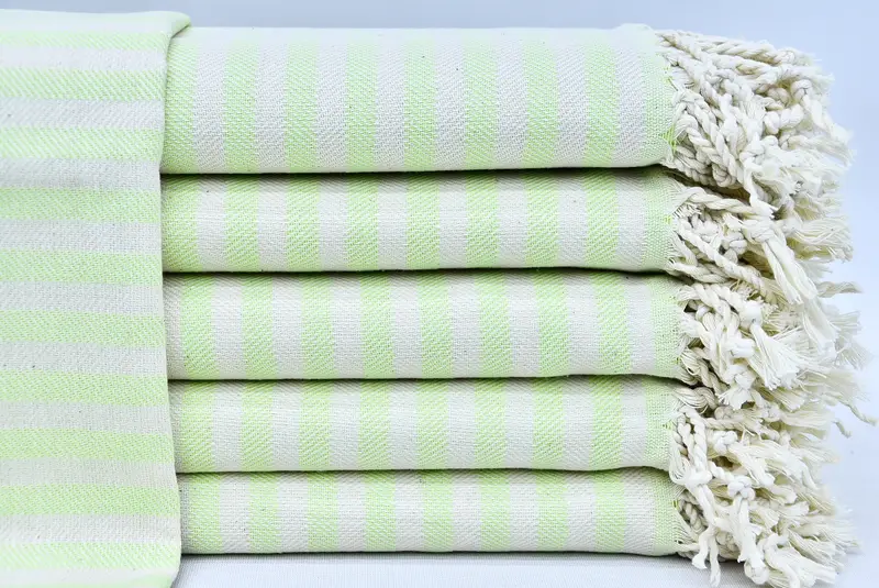 ターキッシュヘッドタオル コットン グリーン&ホワイト キッチン&ティータオル 24x40