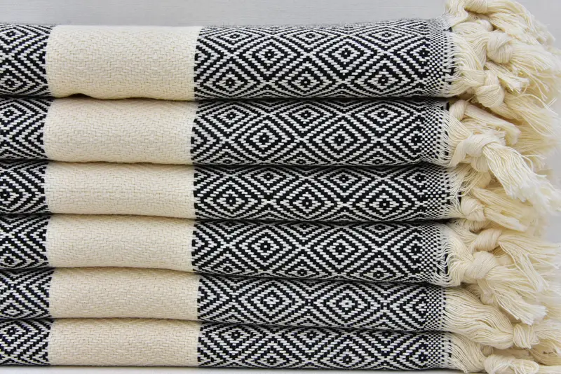 ハンドタオル ブラック ナプキンタオル S 18x40 インチ、トルコ綿