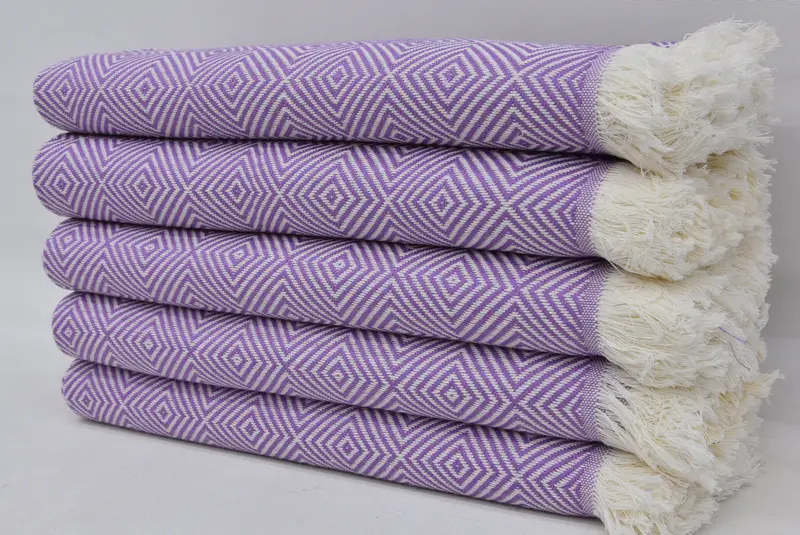 キッチン装飾タオル オーガニックコットン ダイヤモンドデザイン、パープル、20x29