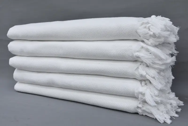 トルコ ハンドタオル ホワイト シェブロン デザイ...