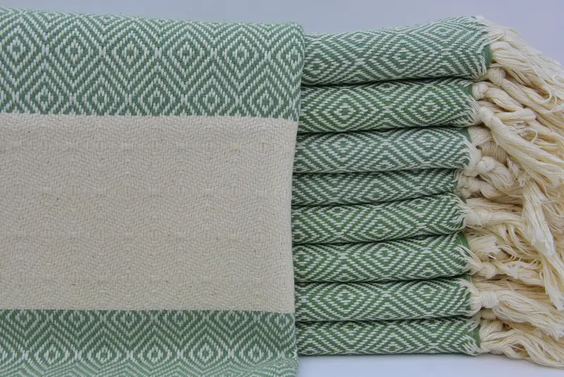 トルコ ペシキル ティータオル オリーブグリーン ...