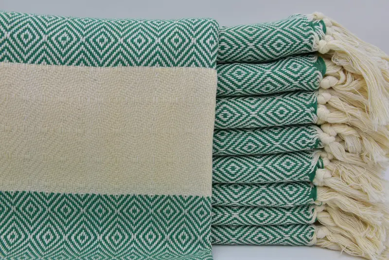 トルコ製ハンドタオル ダークグリーン オーガニックコットン ペシュキル柄 25x40
