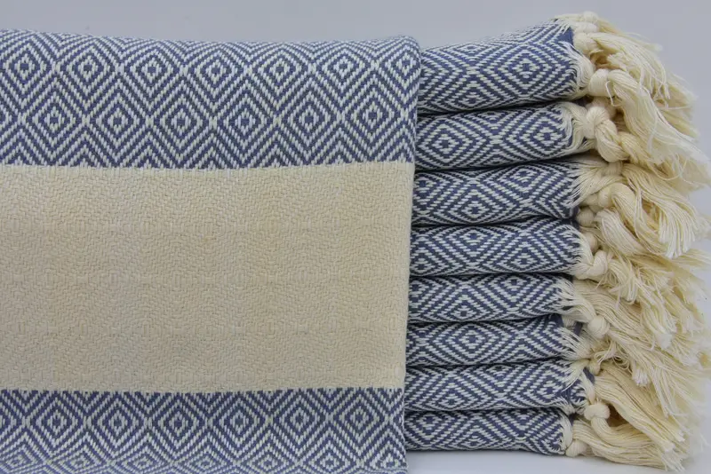 トルコハンドタオル ティータオル ブルー プレミアムコットン 25x40
