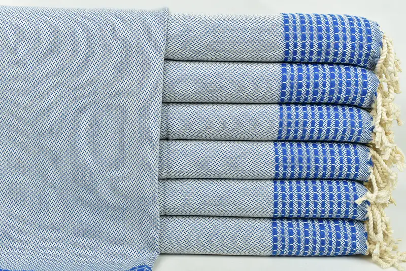 トルコハンドタオル ペトロールブルーとベージュ、モ...