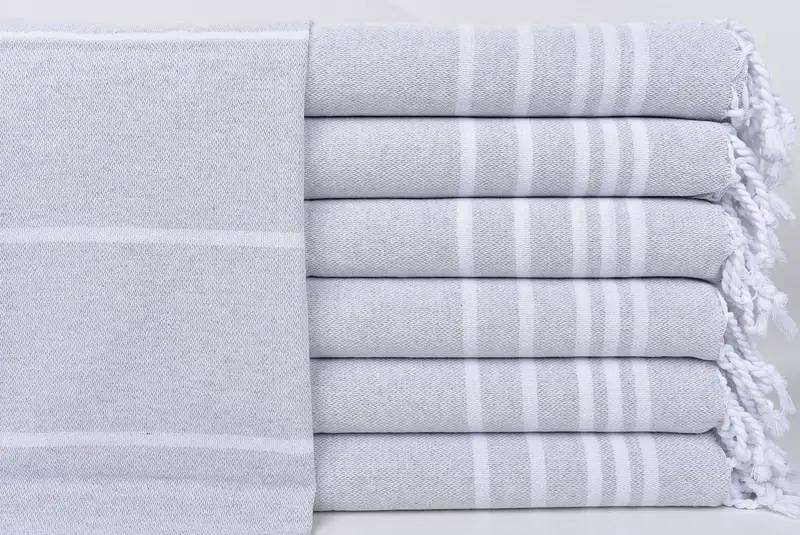 パーソナライズされたハンドタオル ライトグレーストライプ、18x38インチ