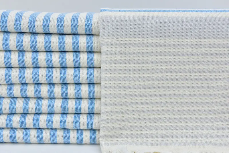 サービスタオル テリータオル ストライプ ハンドタオル 18x36 ターコイズ & ライトグレー