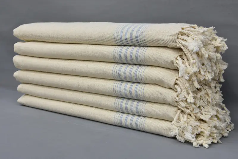 トルコ製ハンドタオル オーガニックリネン ベージュブルーストライプ 20x36インチ