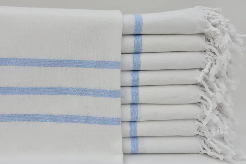 トルコ製ハンドタオル コットン ベビーブルー ストライプ 18x40