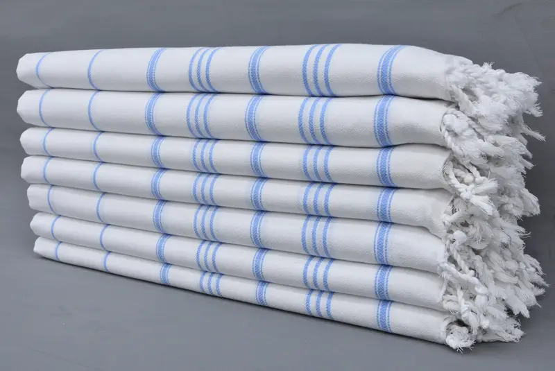 トルコ製ハンドタオル オーガニックコットン ライトブルーストライプ、24x36インチ