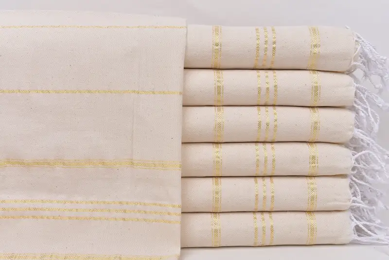 モノグラムキッチンタオル ゴールドストライプ ベージュ、22x36インチ