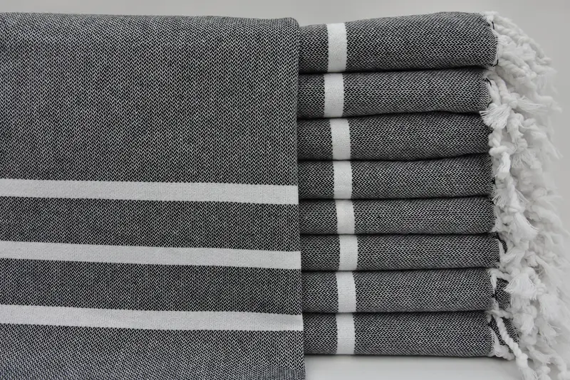 ブラック ハンドタオル ペシュキル トルコ綿 ストライプ、18x40