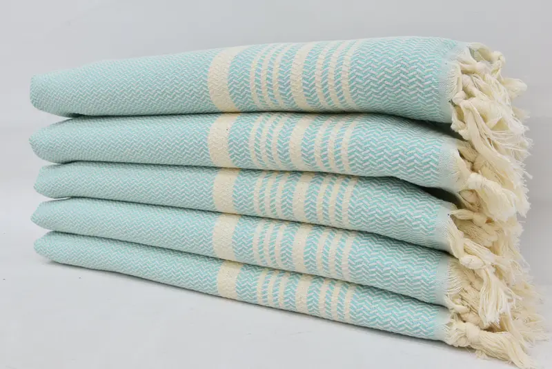 キッチンタオル オーガニックコットン グリーン&ベージュ 18x36