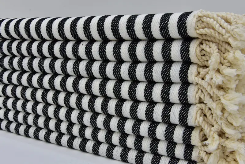 ディッシュタオル トルコハンドタオル ブラックストライプ、コットン、24x40