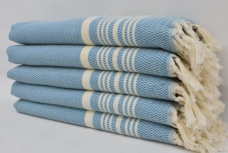 トルコ製ハンドタオル ペトロールブルー コットン、...
