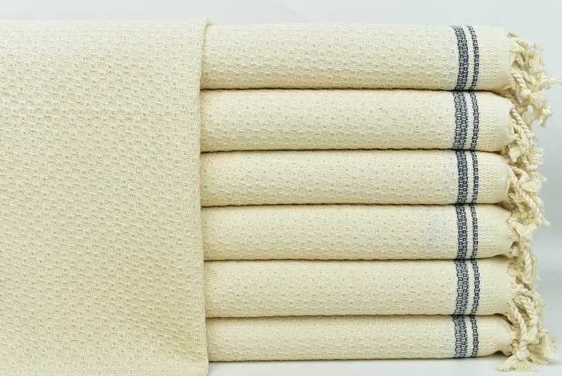 コーヒーティータオル ネイビーストライプ手刺繍デザイン、18x38インチ