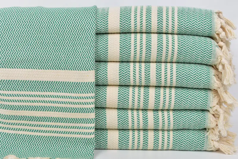 トルコタオル、グリーンストライプキッチン&ティータ...