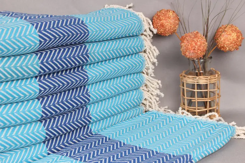 トルコビーチタオルの特徴であるオーガニックコットン糸は、耐久性と優れた吸収性を保証します。寸法は40x71インチ(100x180センチメートル)、公差±2.5センチメートル、重さは450グラムです。各タオルは刺繍によってカスタマイズできるため、個人の価値が高まり、ギフトとしての可能性が高まります。