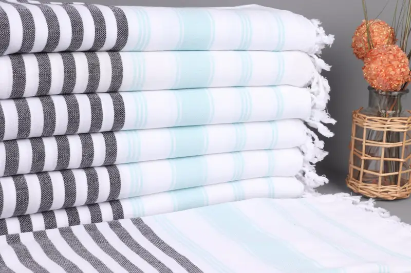 オーガニックコットン糸を使用しているため、吸水性と耐久性に優れており、多用途に最適です。トルコ製ビーチタオルのサイズは 40x71 インチ (100x180 センチメートル)、手織りのため最大 2 インチ (5 センチメートル) の誤差があります。重さは約 300 グラムです。オーダーカスタマイズオプションには名前やロゴの刺繍が含まれており、予洗いされたタオルは使用するほど柔らかくなります。