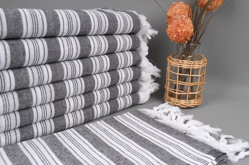 トルコタオル ビーチオーガニックコットン、ブラックストライプ、71x40インチ