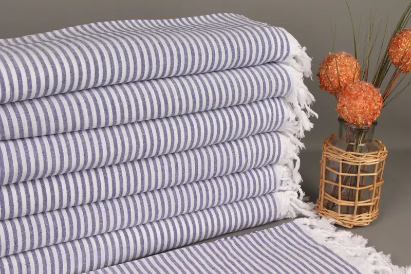 パーソナライズされたバチェロレッテ ネイビーストライプタオル、オーガニックコットン、40x63インチ