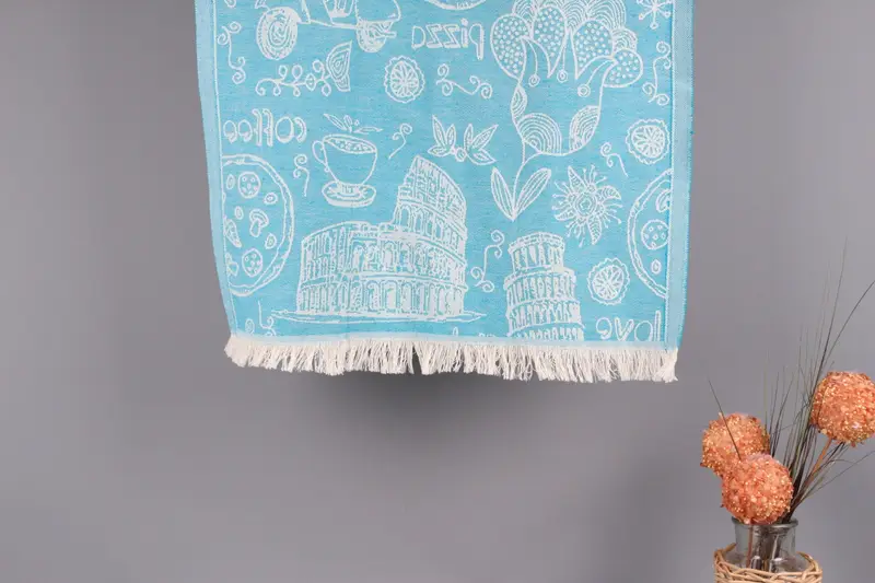 刺繍入りキッチンタオル ダークターコイズ柄、20x28インチ
