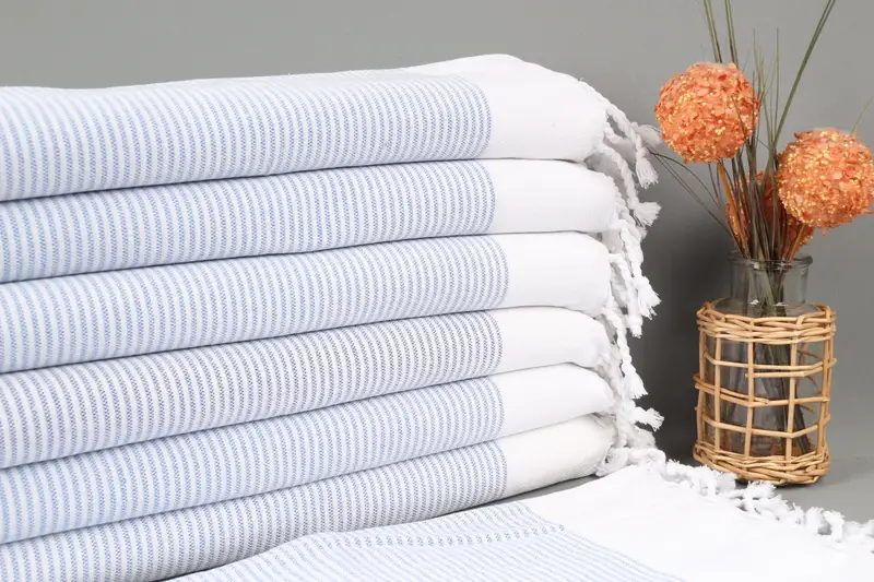パーソナライズされたふきん サックスブルー ストライプ オーガニックコットン 18x40インチ