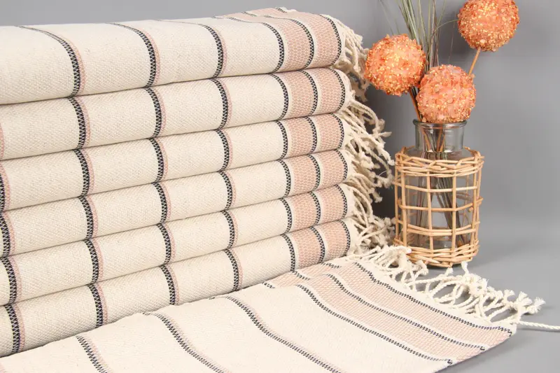 ゲストハンドタオル カスタムブラウンストライプリネンタオル、ベージュ、20x40インチ
