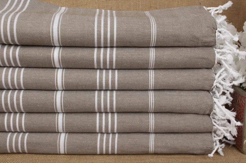 トルコタオルは、純粋なオーガニックコットン素材を特徴とする高い吸水性を確保し、迅速な乾燥に貢献します。このトルコ綿タオルの寸法は 40x71 インチまたは 100x180 cm ですが、手織り技術のため許容誤差は ± 2 インチまたは 5 cm です。タオルの重さは約280グラムです。