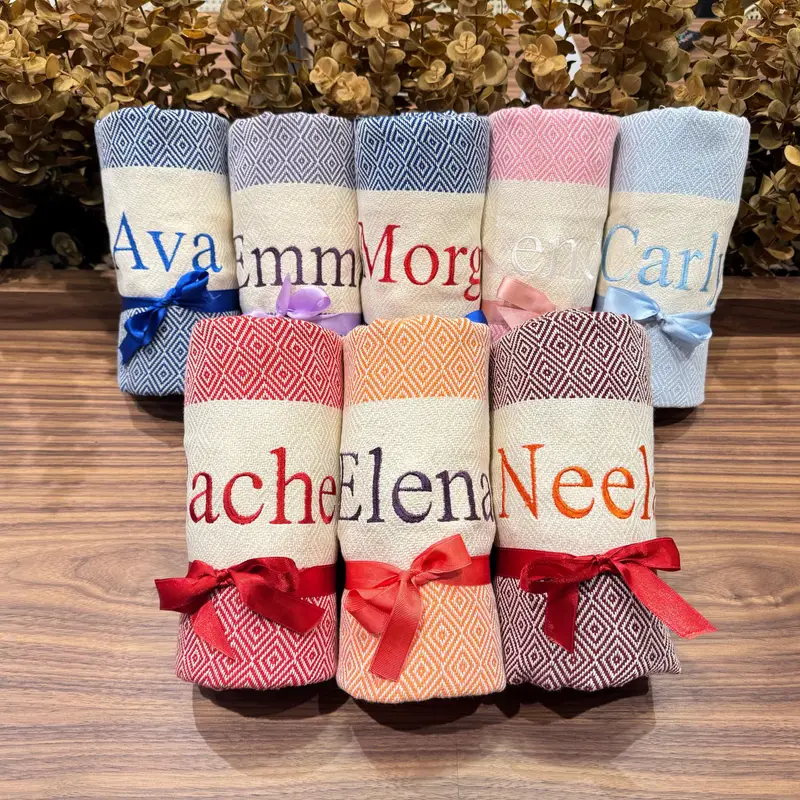 手織りプロセスにより、正確な刺繍のカスタマイズが可能となり、モノグラム刺繍を施したパーソナライズされたギフトをお届けします。タオルは防縮加工が施されており、耐久性が向上しています。 35 ドル以上のご注文の場合は世界中に無料配送され、配達には 2 ~ 5 営業日かかります。