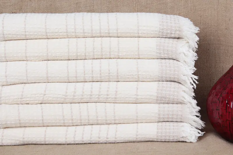 多機能な製品となったこのタオルは、カスタムリクエストに応じてモノグラムを刺繍してパーソナライズすることができます。手織り構造により両面使用が可能となり、汎用性が高まります。