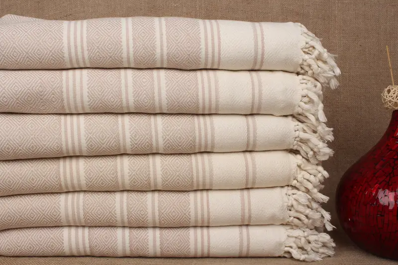 伝統的な手織り技術で作られたこれらのビーチタオルは、キッチン、バス、旅行、ヨガなど、さまざまな用途に多用途に使えます。収縮前の状態により、サイズと形状の一貫性が保証されます。タオルにはパーソナライズされた刺繍を施すことができ、それぞれのアイテムにユニークなタッチを加えます。