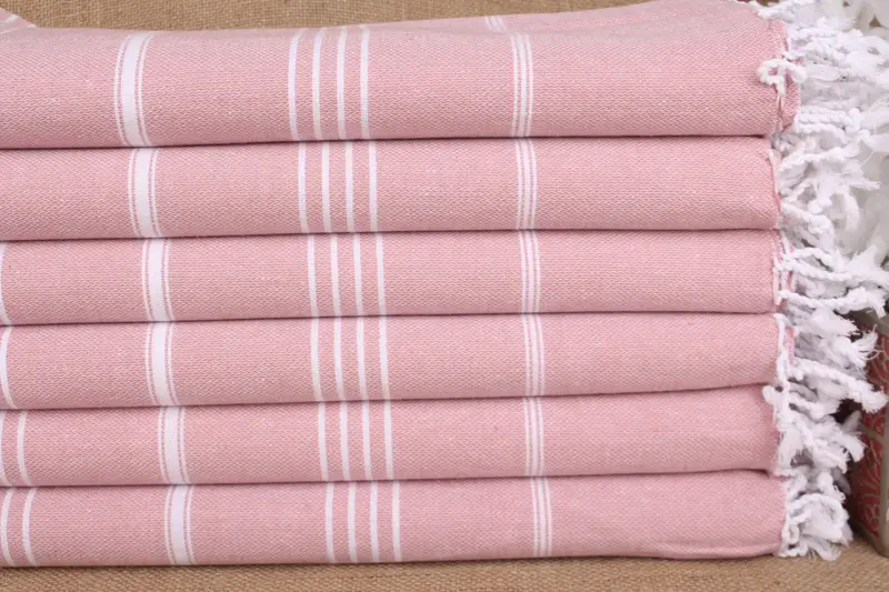 各タオルのサイズは 40x71 インチ (100x180 センチメートルに相当)、重量は約 280 グラムです。手織りプロセスでは若干の誤差が生じますが、品質や機能が損なわれることはありません。これらの特性により、キッチンやバスタオルからビーチや旅行用アクセサリーまで、さまざまな目的に多用途に使えます。
