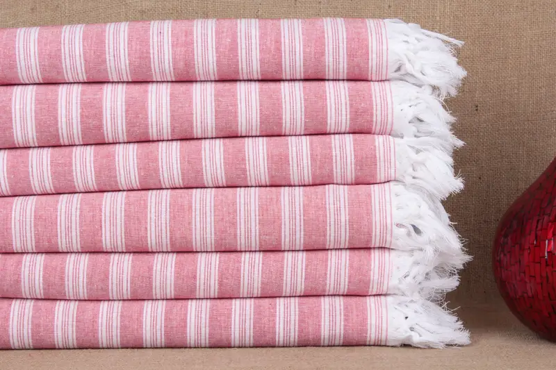 トルコ製バスタオル レッドストライプ オーガニックコットン 40x71インチ