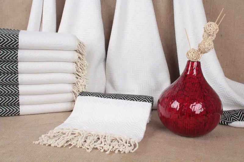 トルコタオル オーガニックコットン ベージュシェブロン、40x67インチ