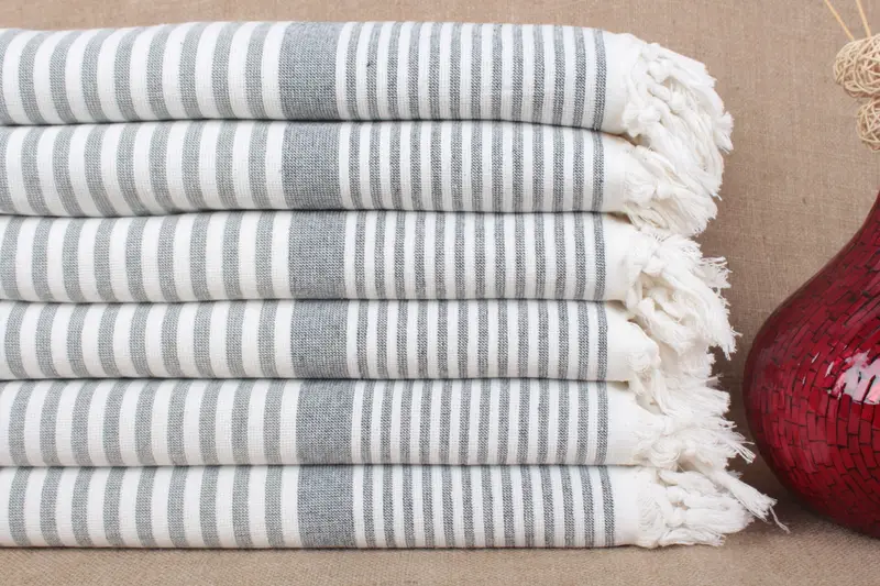 オーガニックコットントルコビーチタオル、ストライプペシュテマル、40x67インチ