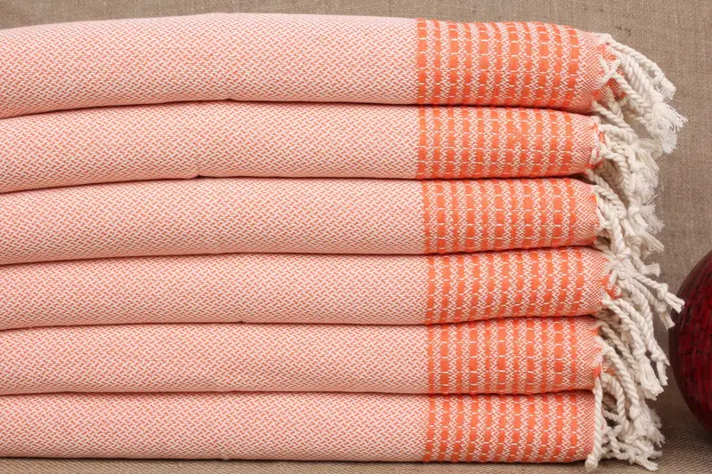 キャンプ ティータオル オレンジ ストライプ、20x40 インチ、オーガニックコットン