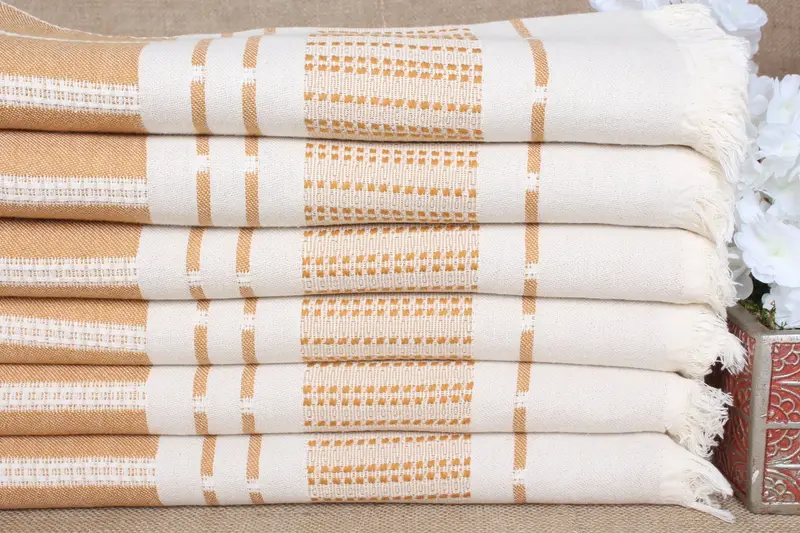 パーソナライズされたトルコビーチタオル マスタードストライプ、36x67インチ