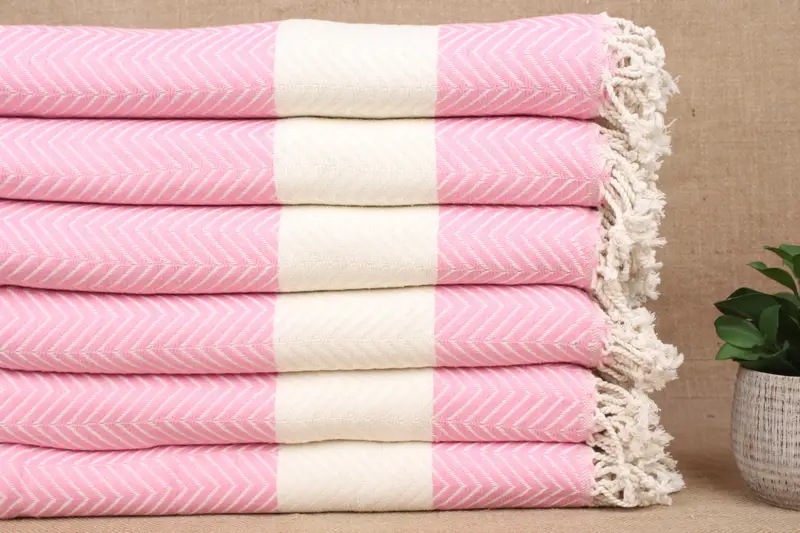 モノグラム入りトルコ綿ビーチタオル ピンクホワイトシェブロン、40x71インチ
