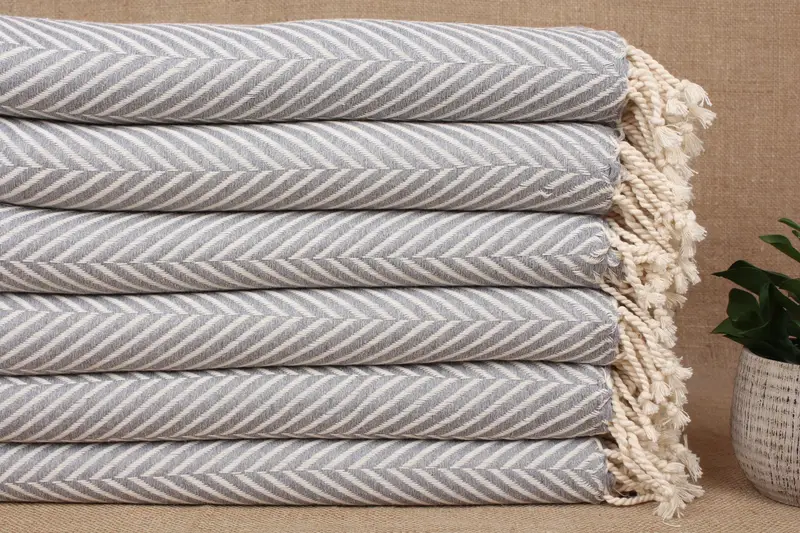 カスタムビーチタオル ダークグレーシェブロン パー...