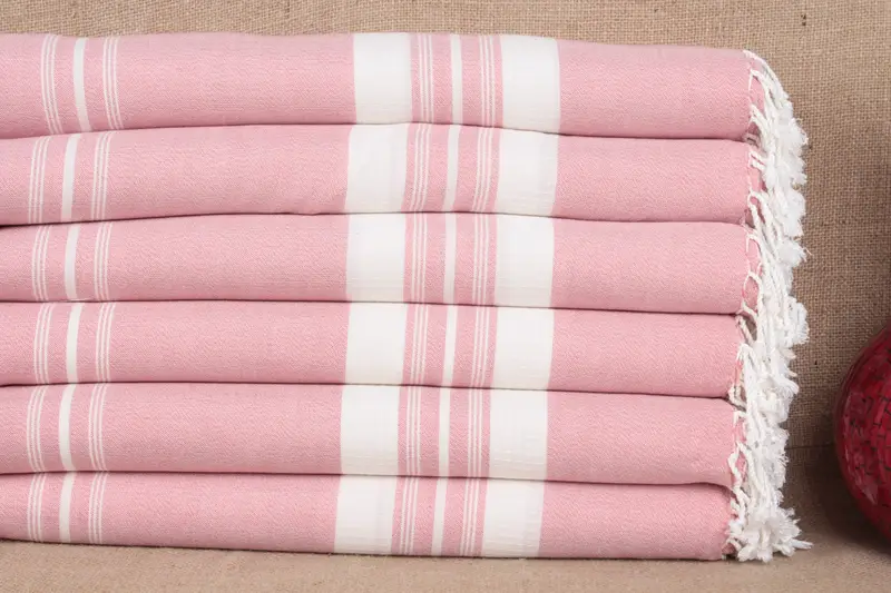 パーソナライズストライプピンクタオルオーガニックコットン、38x60インチ