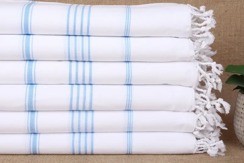 カスタムビーチタオル ライトブルーストライプ パー...