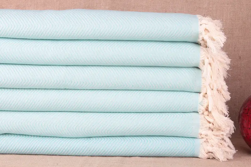 ホームデコレーション オーガニックコットン ミントシェブロン ベッドスプレッド、67x83インチ