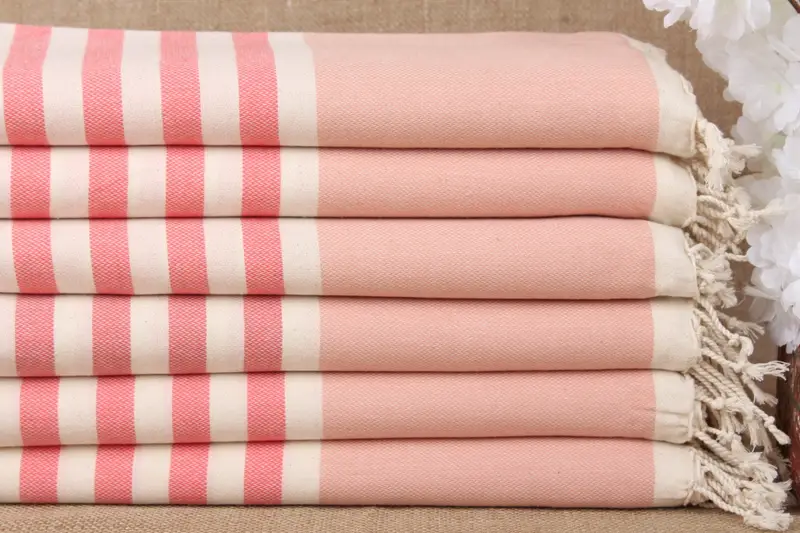 ビーチタオル モノグラム入りトルココットン バーミリオンダムソンストライプ、71x40インチ