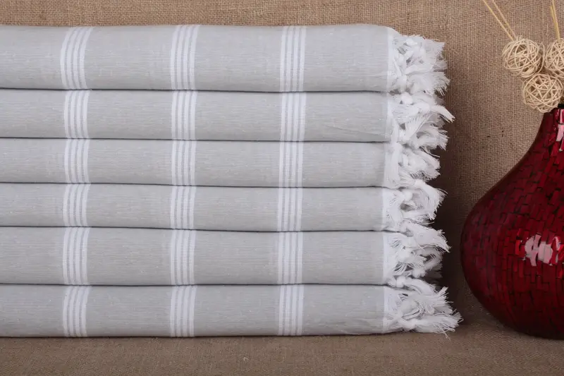 オーガニック トルコ バスタオル ストライプ 30x69 インチ ベージュ