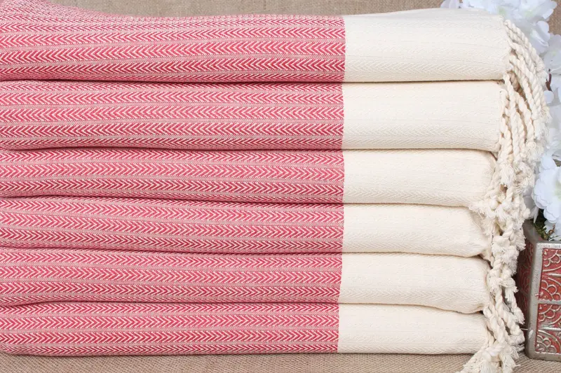 ビーチタオル モノグラム柄トルコ綿レッドパームデザイン、36x67インチ