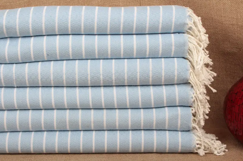 トルコビーチタオル、ライトブルーストライプペシュテマル、40x71インチ