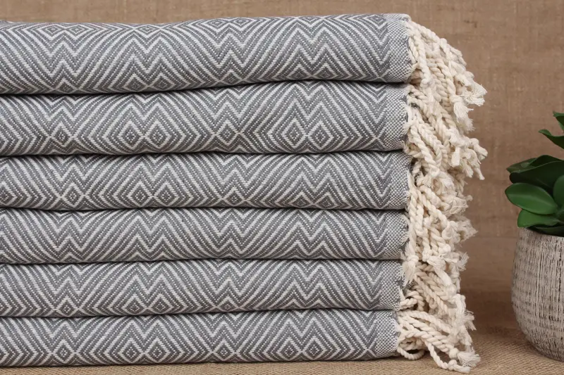 カスタムビーチタオル パーソナライズされたダークグレーダイヤモンド、オーガニックコットン、40x75インチ